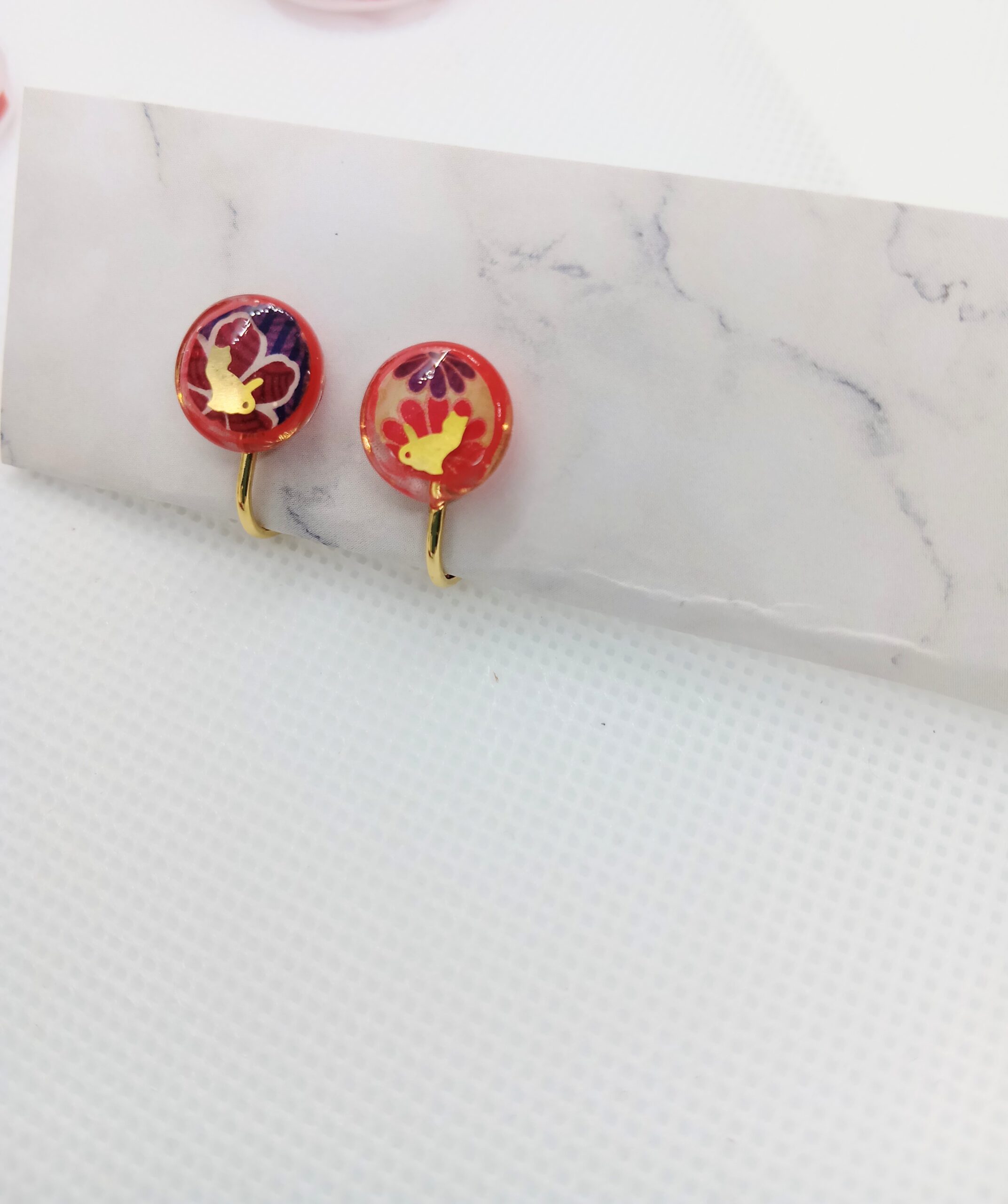 和柄の中に金色猫がこっそりいるイヤリングです お正月や成人式などのお出かけ、普段のちょっとした和柄の取り入れにいかがでしょうか(^^)