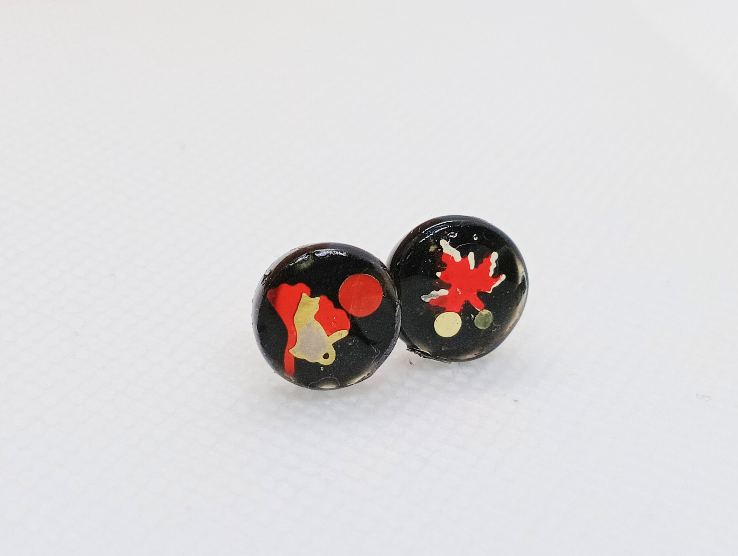 黒いbackに金色猫ともみじを添えて イヤリング・ピアスをお選びいただけます